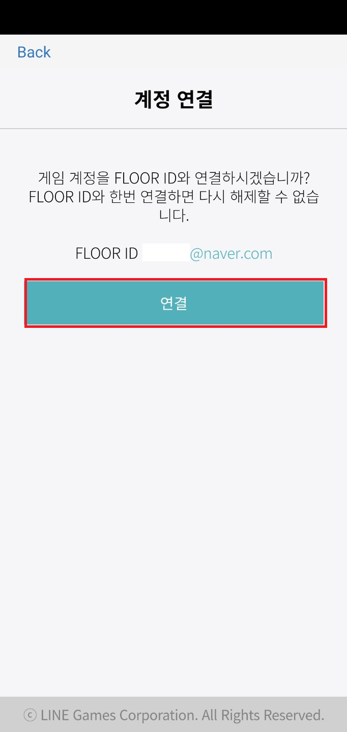 크로스 플랫폼 하고자 하는 FLOOR 게임의 계정을 입력하고 로그인을 진행하면, 언디셈버 계정연동 화면을 볼 수 있고요. 이어서 연결 버튼을 터치합니다.