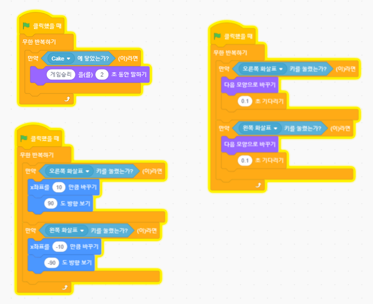 위 그림은 케익 스프라이트 코딩블록 입니다.