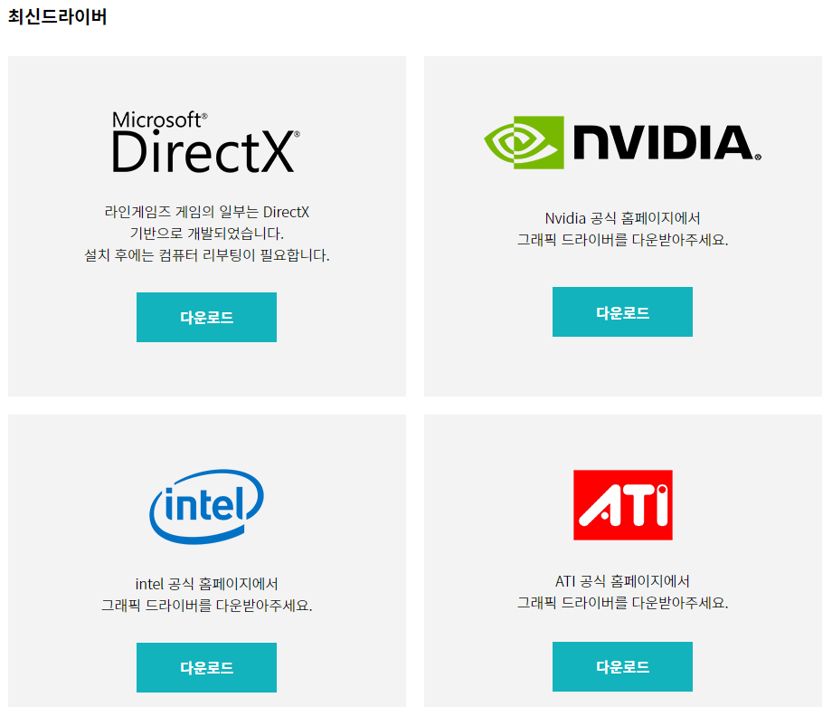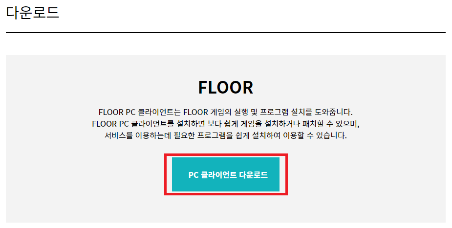 FLOOR 런처를 다운로드 받기 전에 PC에 최신드라이버가 설치되어있는지, 설치가 필요하다면 하단에 드라이버를 먼저 설치하시길 권장하며, 드라이버가 최신버전이라면 화면 상단에 있는 'PC 클라이언트 다운로드' 버튼을 클릭하여 런처를 다운로드 받고 클릭하여 언디셈버 PC 설치를 진행해보겠습니다.